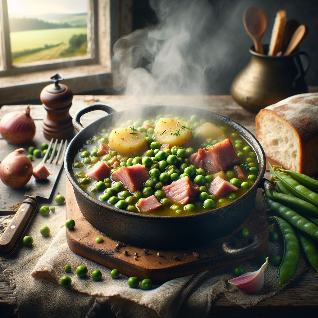 Sabroso potaje de chícharos con jamón y patatas